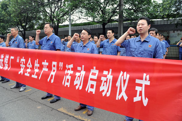 当日,淮选厂举行了简约而又庄重的“安全生产月”活动启动仪式,迎接全国第十五个“安全生产月”的到来,由此拉开了我厂“安全生产月”的序幕。