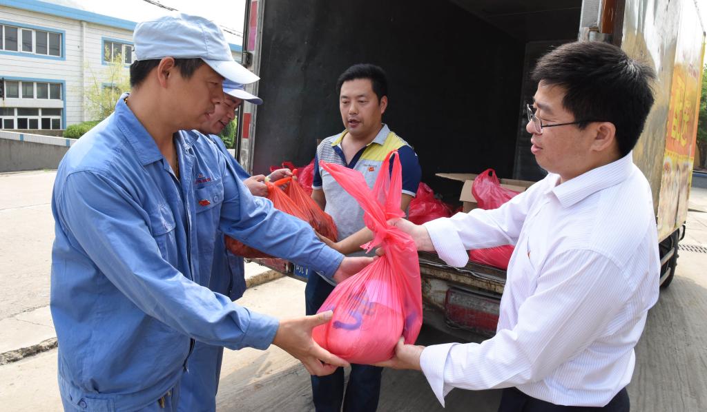 端午佳节来临之际,公司准备了丰盛的节日礼物。6月8日上午,公司工会把一份份粽子、白糖、香包送到车间,送到一线职工手中,送上了公司一份殷殷祝福和浓浓深情。
