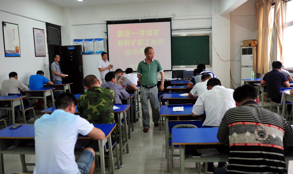 6月21日,袁店一矿在职工教育培训中心教室对76名新转矿职工进行岗前培训理论测试。