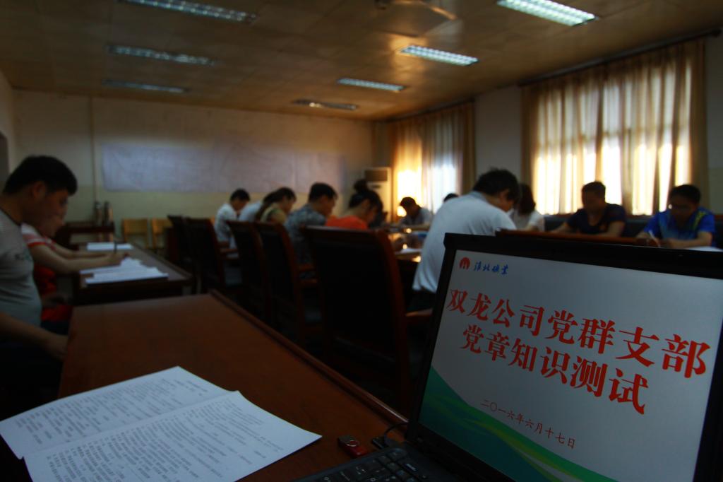 近期,双龙公司举行党章知识测试。为确保党章测试全覆盖,在此之前,双龙公司针对各基层支部党员的实际情况,统一印发试卷发放到基层各支部,该公司督导组成员亲自到现场监考、批阅试卷。