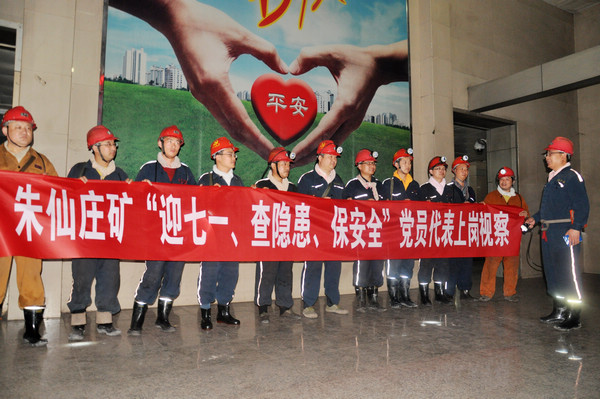 6月24日夜班,朱仙庄矿党委组织采掘、辅助及机关的党员开展“迎七一查隐患保安全”党员代表上岗视察活动,以实际行动践行“两学一做”,迎接建党95周年。