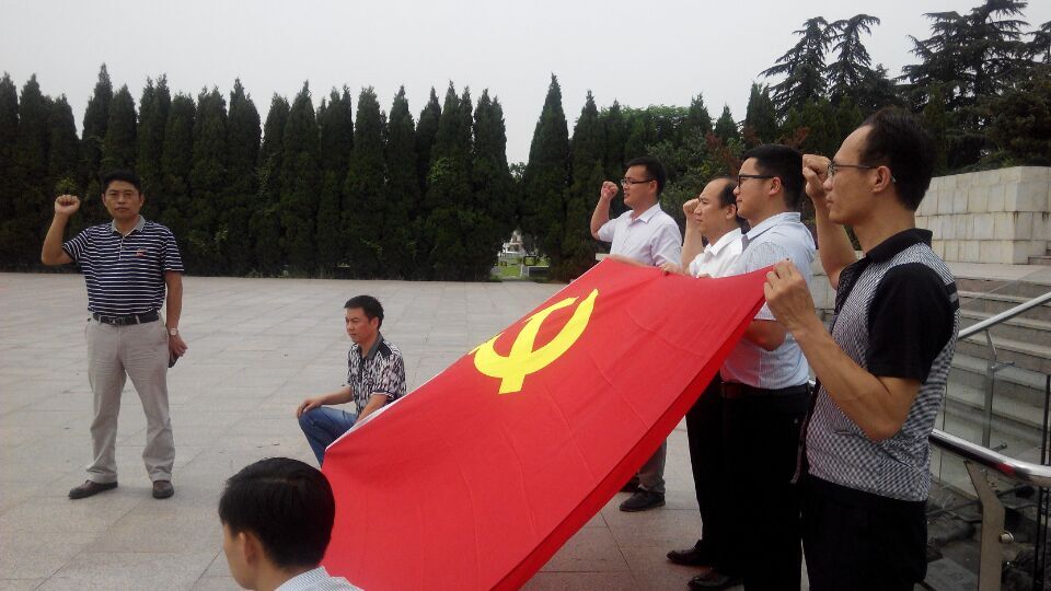 6月30日上午,袁店二矿4名新党员驱车来到双堆集烈士陵园,缅怀先烈遗志,颂扬烈士丰功,并在淮海战役烈士纪念碑前进行入党宣誓。