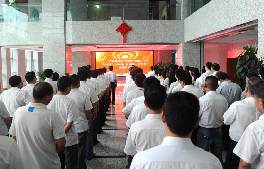 为庆祝建党95周年,推动“两学一做”学习教育深入扎实开展,引导全体党员立足岗位多奉献,充分发挥先锋模范作用。7月1日上午,工程建设公司在一楼大厅举行“亮身份、作承诺、当先锋、树形象”活动仪式。公司领导和机关全体党员参加了仪式。