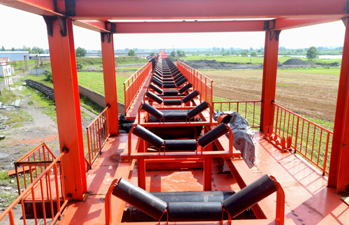 图(1)朱仙庄矿对钢桁架式皮带运输系统进行安装。