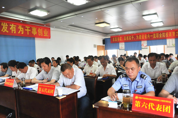 来自院属12个支部的80名代表肩负全院242名党员和广大师生的重托齐聚一堂,为学院转型发展建言献策,描绘学院美好明天。会议通过了“两委”报告决议。大家一致认为,今后五年,是学院抢抓机遇、加快发展、推动实现新跨越的关键时期。学院各级党组织和广大党员要按照本次党代会的工作部署,认真贯彻落实党的十八届五中全会以及集团公司第五次党代会精神,以科学发展观为统领,谋划新发展,再谱新华章,加强和改进党的建设,组织和带领全院职工群众进一步解放思想,开拓创新,抓好强化思想引领、打造人才队伍、提升培养质量、优化办学格局、推进管理创新、构建和谐校园六件大事。会议号召,全院党组织和全体共产党员要在院党委的坚强领导下,高举建设有中国特色的社会主义伟大旗帜,在科学发展观的指引下,团结带领广大党员干部职工,解放思想,抢抓机遇,改革创新,扎实工作,奋力进取,着力打造一流职业院校,为开创学院更加美好的明天而努力奋斗!