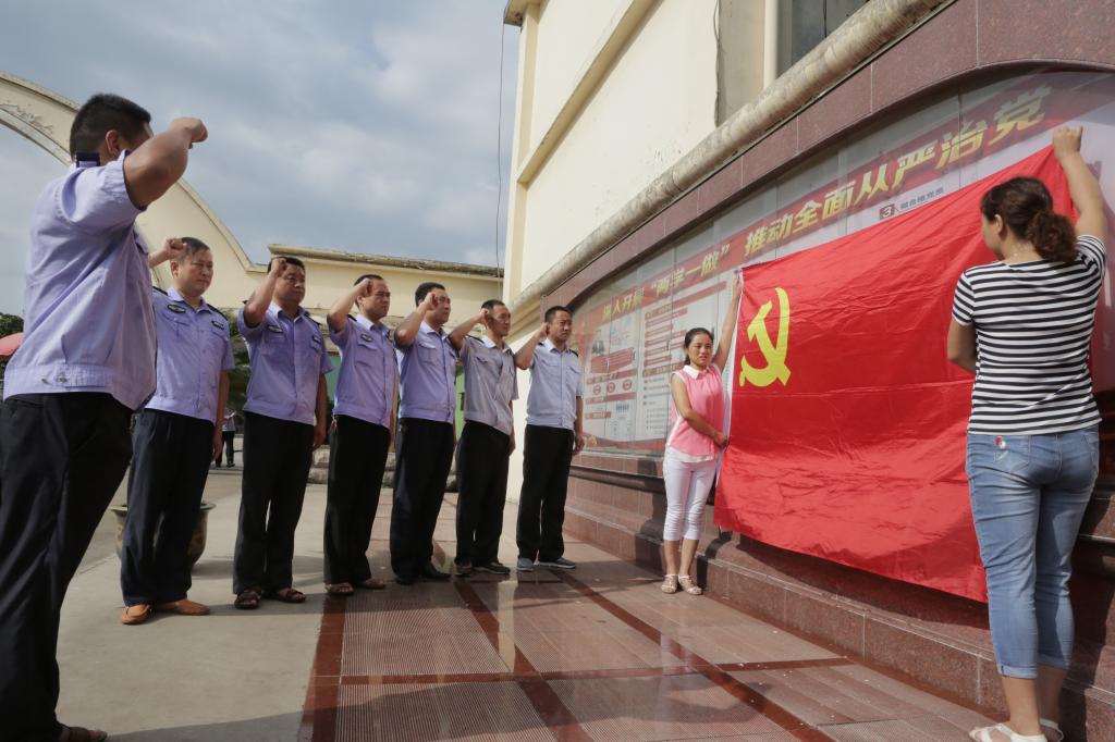(图为岱河矿业物业公司退伍党员在党旗下公开承诺)