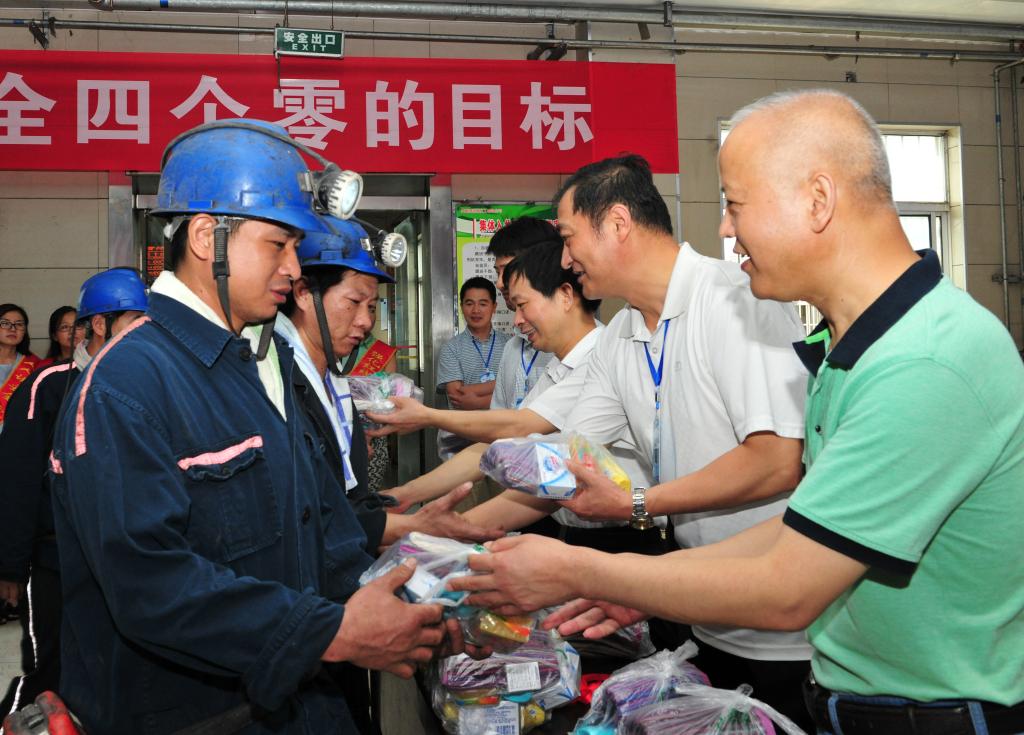 神源煤化工公司领导陈贵、梁东明、吴智明陪同慰问,并与慰问团一同向职工们送上风油精、香皂、洗发水等防水降温用品。