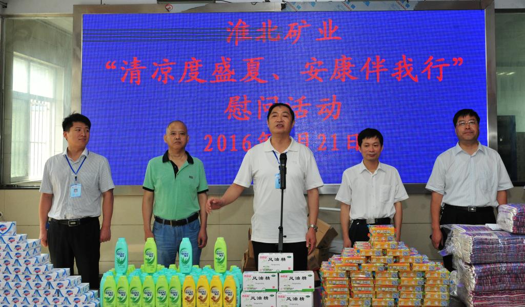 7月21日,淮北矿业工会副主席武怀黎、团委副书记方明一行到神源煤化工开展“清凉度盛夏、安康伴我行”慰问活动,代表淮北矿业向冒着高温,坚持奋战在生产一线的干部职工送去的亲切慰问和祝福。