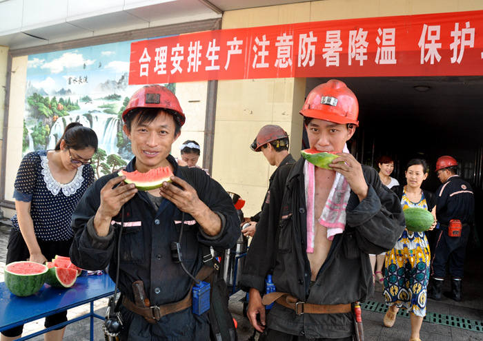 “师傅,吃块西瓜解解暑,下井注意安全哦……”7月28日中午,朱庄煤矿工会女工部组织协安员到井口,为上下井一线职工送上清甜的西瓜、绿豆茶和温馨的安全祝福,炎炎夏日送清凉,丝丝关爱寄深情。