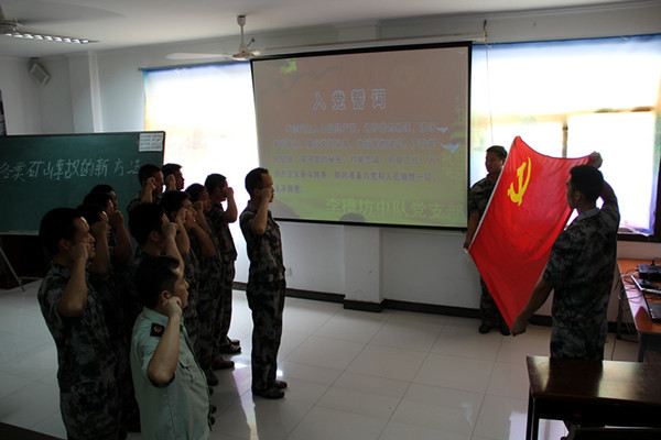 报告会开始前,举行了新党员入党宣誓、正式党员重温入党誓词仪式。李槽坊中队新老党员面对鲜红的党旗进行了庄严宣誓,更加坚定了“坚守理想信念,带头率先垂范”做一名有坚定信仰的共产党员的铮铮誓言。