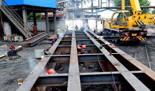 8月20日清晨,受暴雨影响,朱仙庄矿地面201主运皮带机栈桥发生垮落,造成矿井停产。得知这一情况后,集团公司领导高度重视,组织相关部室第一时间赶赴现场处理险情,确定抢修方案及措施。局、矿立即成立抢修指挥部,下设技术、施工、材料供应、安全监督、后勤保障等工作小组,做好抢修的指挥、协调和保障工作。并及时改造生产系统,保证升井原煤落地车运,最大限度地减少了生产影响。工程建设公司组织40名精兵强将负责抢修施工,在时间紧、任务重的情况下,冒着高温酷暑坚持24小时不间断作业。目前,抢修各项工作进展顺利。