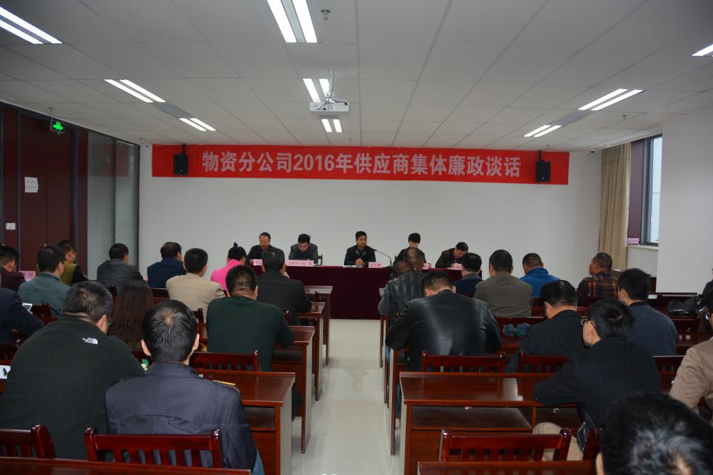10月28日上午,物资分公司组织第八批供应商集体廉政谈话,共有青岛巨航机械有限公司等31家供应商参加。
