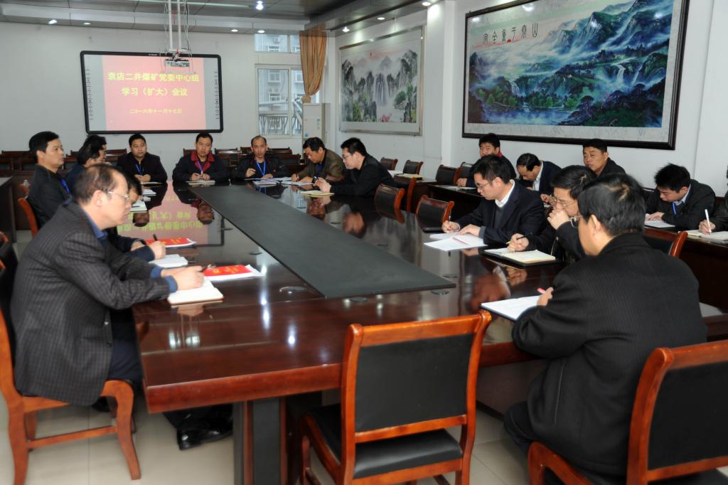 11月17日上午,袁店二矿召开党委中心组学习(扩大)会议,认真传达学习党的十八届六中全会和省第十次党代会精神,研究部署落实淮北矿业《关于认真学习宣传贯彻党的十八届六中全会和省第十次党代会精神的通知》工作。党委中心组成员参加了会议,机关部室和地面单位主要负责人列席会议。
