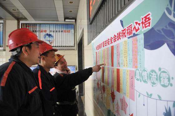 在桃园矿井口候罐室,一张张五彩卡片拼贴成的心愿墙格外引人注目,吸引上下井的职工驻足观看,一句句安全祝福映入眼帘、触动心间。