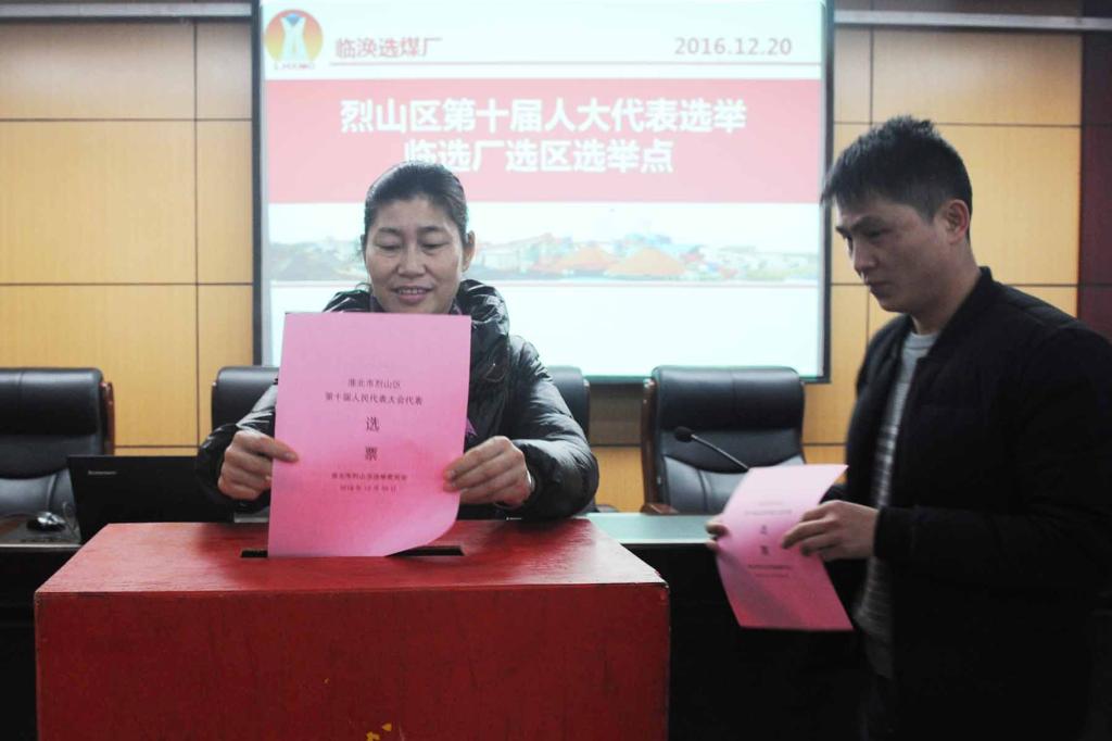 12月20日上午,烈山区第十届人大代表换届选举工作在临涣选煤厂进行民主选举。该厂2000多名选民分别在基层车间、分厂、办公楼及社区居委会等16个选举点,依法行使民主权利,为自己满意人大代表投下了神圣的一票。图为该厂职工正在投票选举人大代表。(责编:徐成贵)