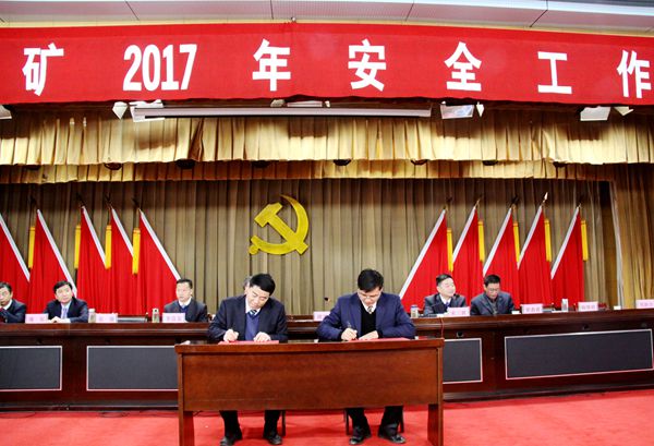 2017年新年第一天,芦岭矿召开2017年安全工作会,矿长周茂春与基层各单位签订安全责任状,坚定安全“零”目标不动摇,确保实现安全生产5周年。