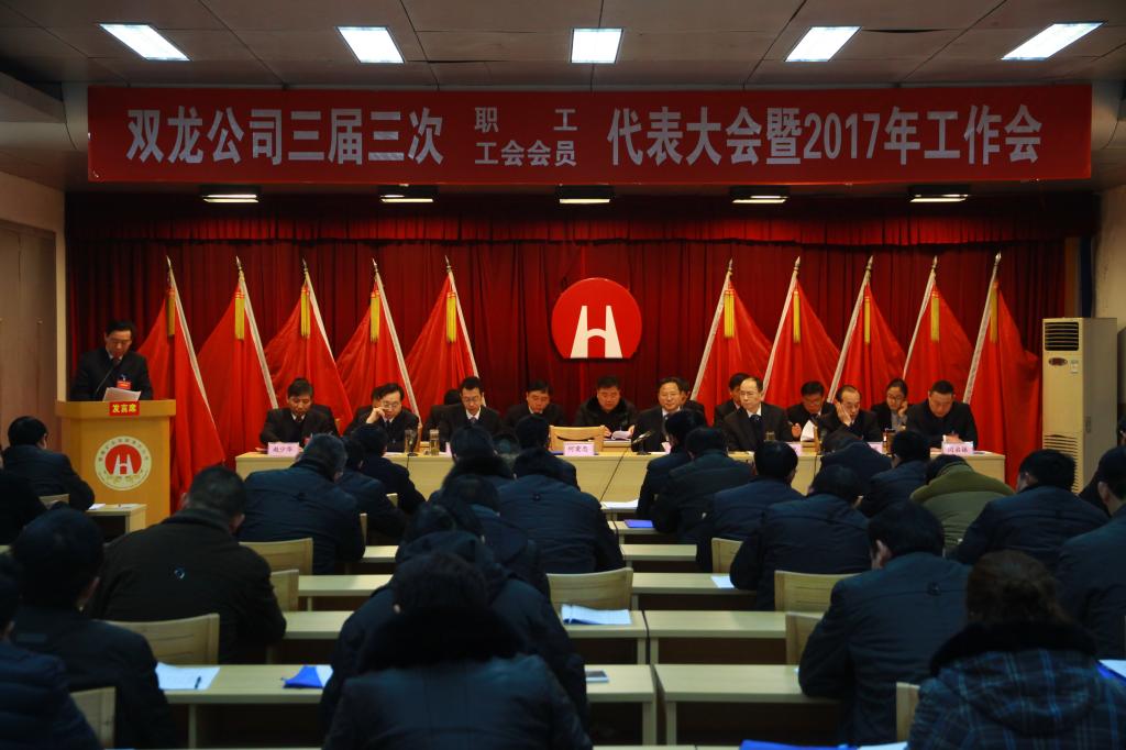 1月20日,双龙公司三届三次职工、工会会员代表大会暨2017年工作会议隆重召开。大会的主要任务是:回顾总结2016年各项工作,安排部署2017年工作任务。动员全公司上下认清形势,坚定信心,凝心聚力,咬定目标,强化责任担当,狠抓工作落实,推动各项工作再上新台阶。