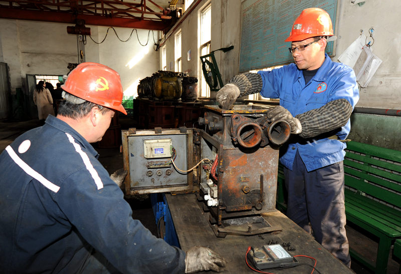 图为井口机厂职工在维修开关设备