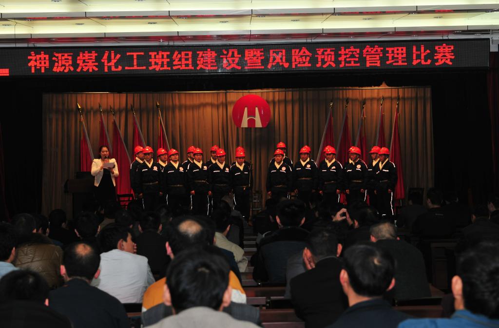 “清理现场、交班汇报时存在风险为滑倒摔伤,控制措施一是班长全面检查,二是职能部门检查、监督。汇报完毕,请指示!”来自防突区的职工刘总结声音响亮、回答流利,展示出良好的精神面貌,赢得台下观众热烈掌声。4月6日上午,可以容纳四百余人的职教会议厅座无虚席,神源煤化工班组建设暨风险预控管理大赛第一轮第二场比赛在此如期“开战”,由通风区注浆队对阵防突区钻机队。