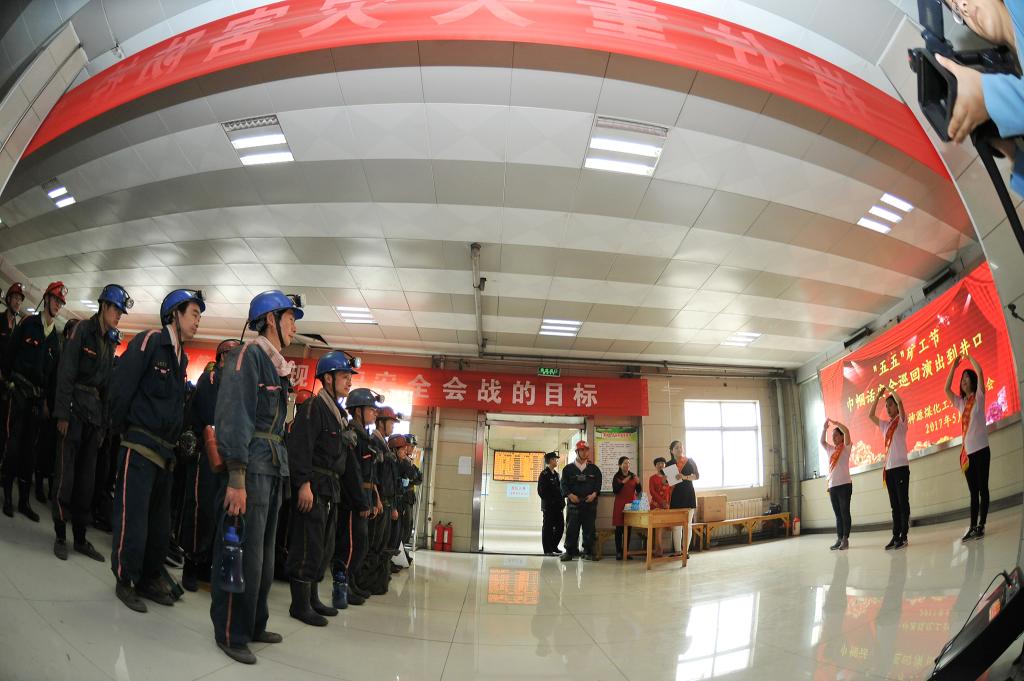 这是5月5日中午,在淮北矿业“五五”矿工节来临之际,神源煤化工工会组织女工协安员开展“‘五·五’矿工节、巾帼话安全”巡回演出到井口活动的场景。