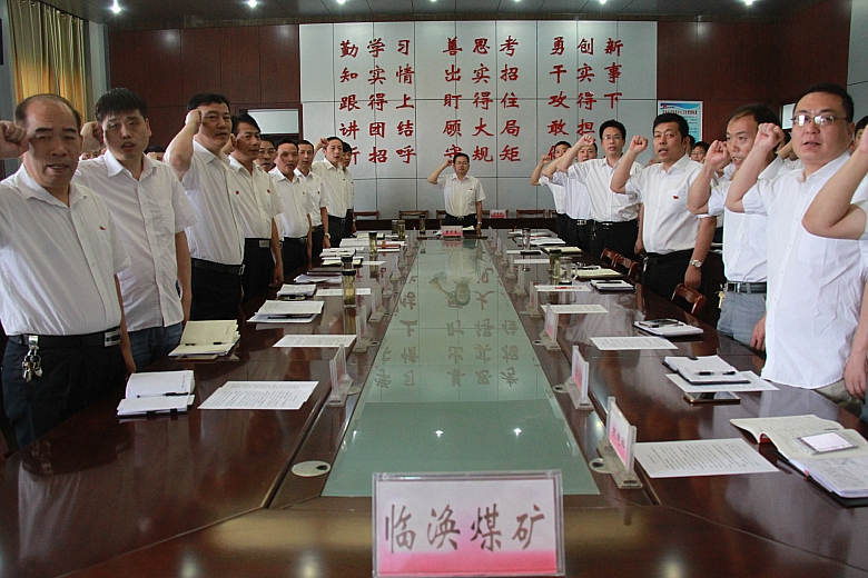 报告会开始前,临涣矿全体参会人员,在主会场主持人,淮北矿业党委常委、纪委书记周伟的领誓下,面向党旗重温了入党誓词。