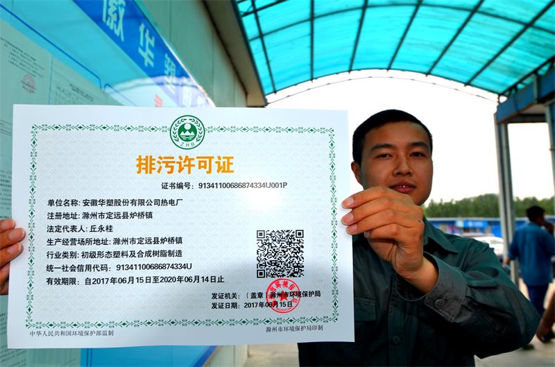 近日,华塑股份公司热电厂获得滁州市环保局颁发的排污许可证。