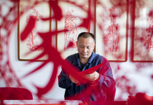 为庆祝淮北矿区开发建设60周年,临涣选煤厂工会积极筹办“我与淮矿共成长、共筑企业大家庭”剪纸摄影书画展活动。中国书画家协会一级美术师、安徽省工艺美术大师、淮北市剪纸非遗传承人、临涣选煤厂职工陈国斌和他的学生们,以“家”为主题积极创作,用一幅幅精美绝伦的剪纸作品,述说着他们情系淮北矿业迈进质量时代的“企业梦”。图为日前陈国斌大师正在剪纸创作“家”系列作品。(责编 梁尚文)