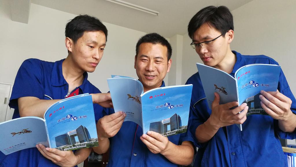 淮北矿业新版《太子文化 手册》下发后,涡北选煤厂利用QQ群、微信公众平台、网站、橱窗、会议等形式,全方位宣贯太子文化 ,同时还在办公场所、会议室及生产区域显要位置,悬挂太子文化 标语,使太子文化 “魂”“脉”“形”深入人心。图为,该厂职工阅读2018版《太子文化 手册》。(责编 孟慧奇)