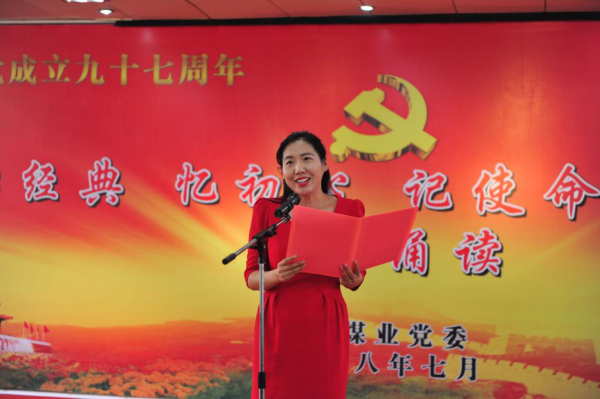 诵读千古美文,传承华夏文明;共读中华经典,聆听诗词书韵。为隆重纪念建党97周年,进一步增强党组织的凝聚力和战斗力,激发广大党员的爱党爱企热情。青东煤业党委举办了“读经典、忆初心、记使命、共前行”红色经典诵读活动,用朗诵的形式表达“激情讴歌颂党恩、不忘初心跟党走”的理想信念。
