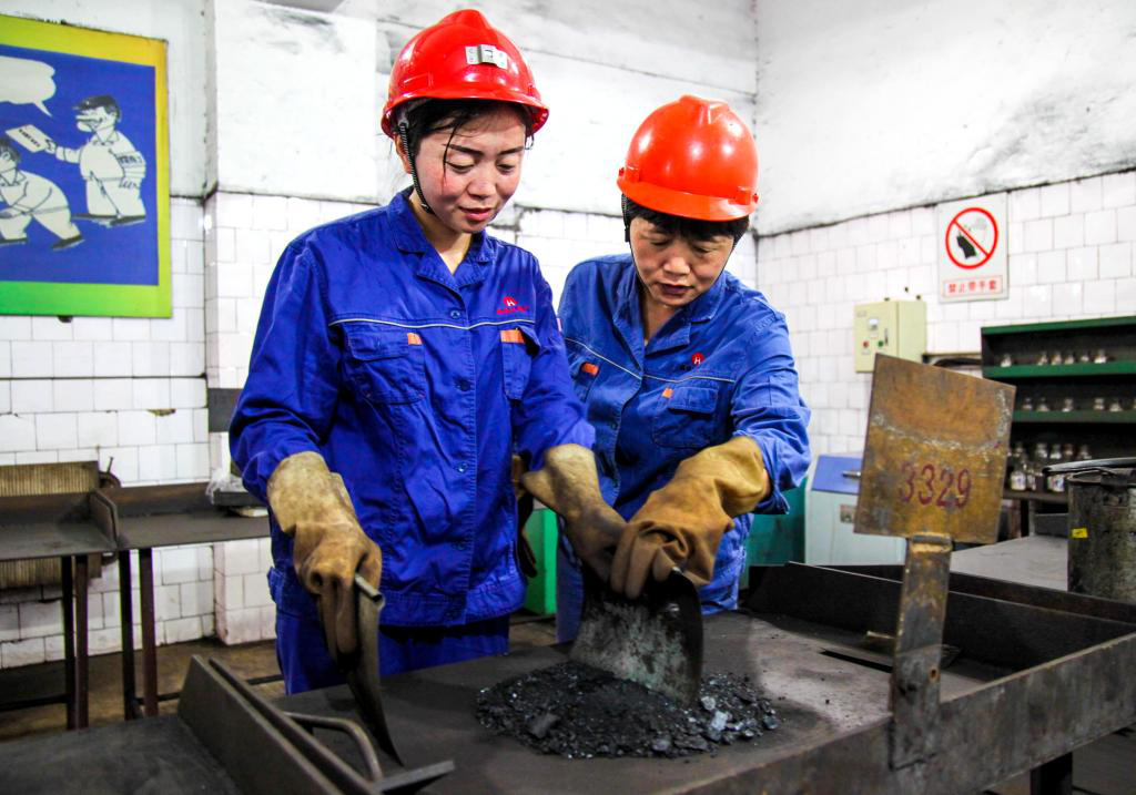 近年来,临涣选煤厂不断创新职工技能培训方式,充分运用“微课堂”、“一对一”、“点菜式”等新型培训方法,认真做好职工技能提升工作,并使一批技能“贫困户”实现了“脱贫”。图为7月22日临涣选煤厂采制样工孙爱玲(右一)正在“一对一”地向本厂员工窦胭脂传授缩分煤样的技巧。