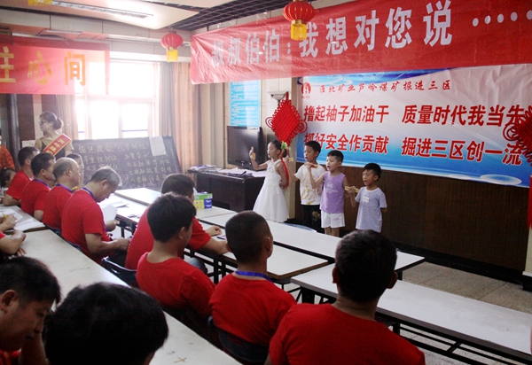 “叔叔、伯伯,我想对您说:你们辛苦了!你们在井下工作时一定要小心呀!”8月10上午,芦岭矿组织开展“叔叔、伯伯我想对您说”协安活动,用童声呼唤安全,用亲情守护平安。
