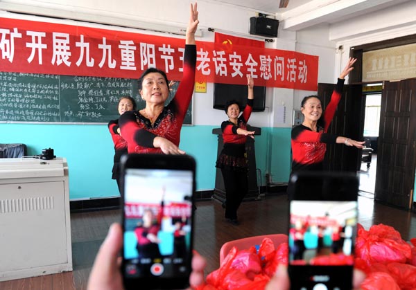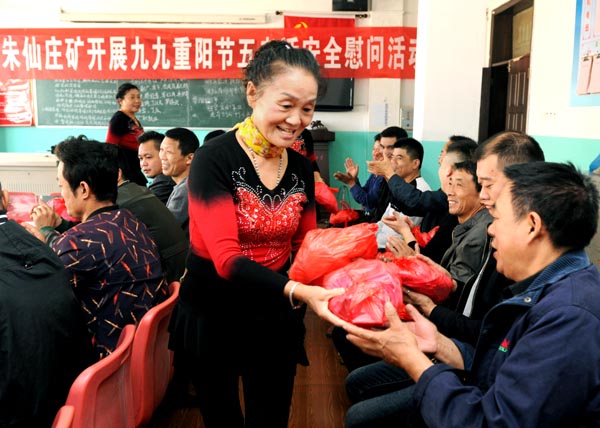 10月16日中班,朱仙庄矿关工委开展“九九重阳节‘五老’话安全”慰问活动。