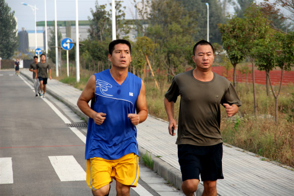 (体能:参赛队员用手机测定5000米跑步用时,争分夺秒,你追我赶)