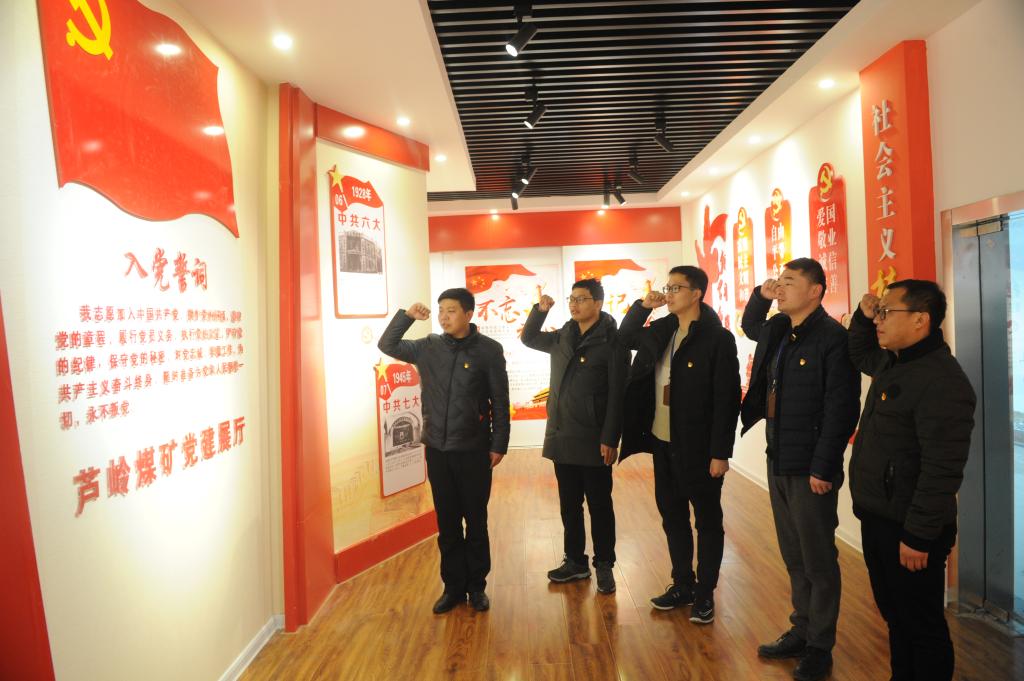 近日,4名新加入党组织的80后党员一同走进芦岭矿党建活动室,举起右拳,再次面向党旗庄严宣誓,立下誓言,领誓人不是别人,正是今年刚刚获得集团公司工匠称号的通风区测气队队长候伟。