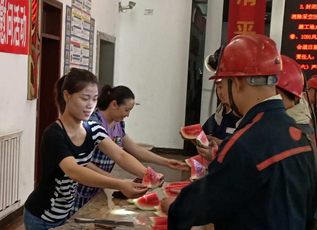 连日来,芦岭矿工会组织协安员开展夏送清凉活动,深入到井口、岗位为一线职工送去清凉解渴的西瓜。