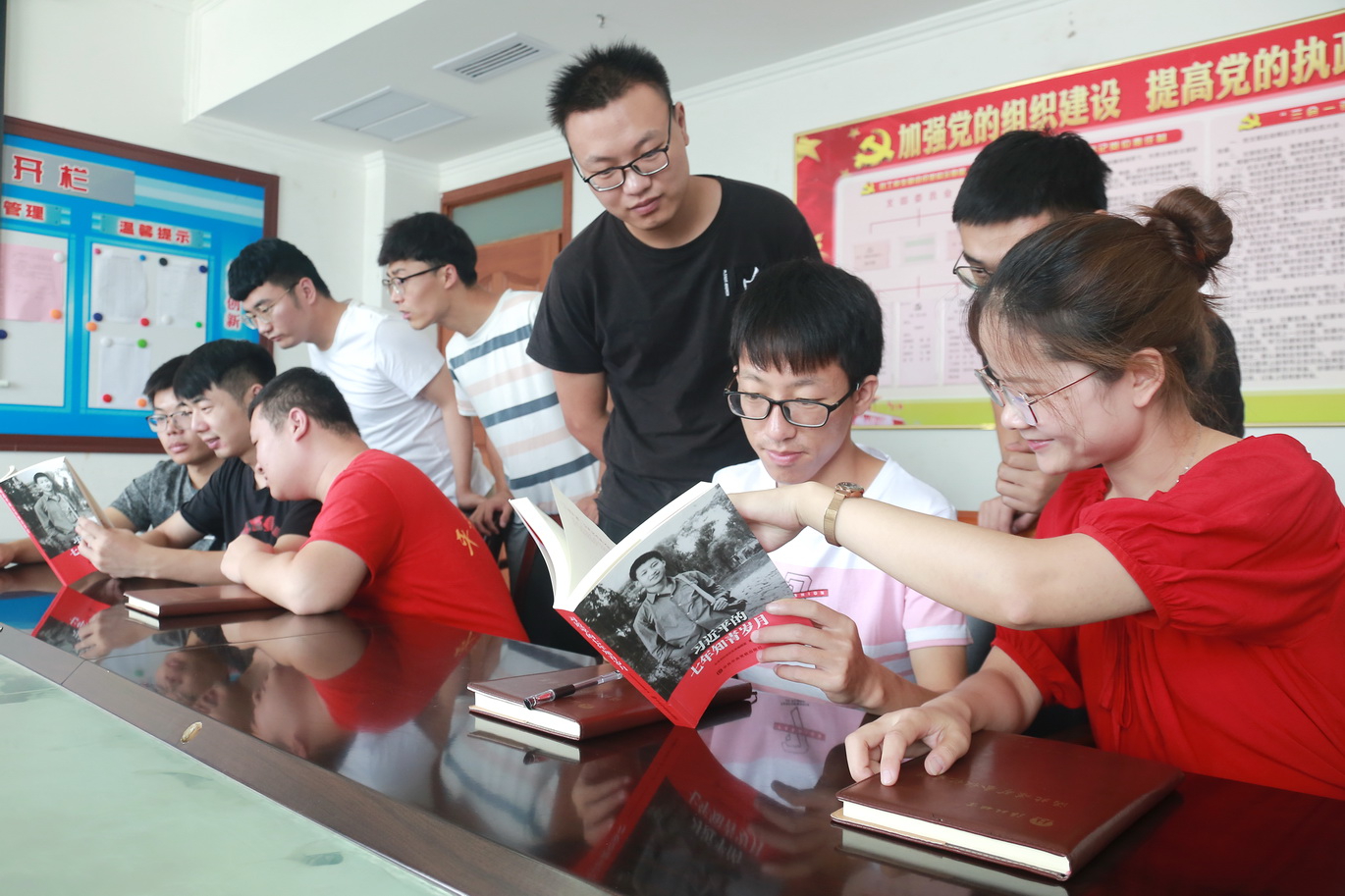 图为该矿新进毕业生在学习《习近平的七年知青岁月》从中汲取实现梦想的精神力量。